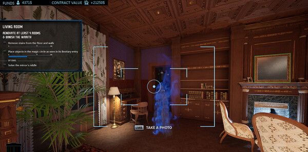 装修系统自由度极高,提供100+家具和装饰品。玩家可粉刷墙壁、铺设地板,甚至设计八卦阵布局。任务需兼顾客户需求与掩盖灵异痕迹,例如将血手印用粉色壁纸覆盖,或将地窖改造为电竞房。此外,游戏包含全球多样化的鬼屋场景,如欧洲古堡、中式凶宅等,每个地图结合当地文化设计独特的灵异事件。