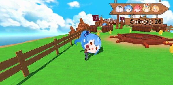 采用3D卡通渲染风格,Hololive成员以圆润Q版造型登场,动态表情生动活泼。场景设计奇幻明快,山坡、雪地等环境细节丰富,搭配动态光影与色彩碰撞,营造轻松视觉氛围。物理反馈真实,如雪地减速、草地加速等互动效果增强沉浸感。
