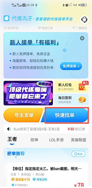代练丸子是一款有着千万注册用户的游戏代练平台,软件致力于为玩家提供优质、高效、安全的游戏代练服务。无论您是想找大神代练上分,还是利用空闲时间代练接单,代练丸子都能满足您的需求。提供平台担保,确保交易安全可靠。而且,作为新用户,用户注册即可领取100元的红包福利!不仅如此,软件的代练服务高效快捷,十分钟内即可上号,让您轻松获得胜利。