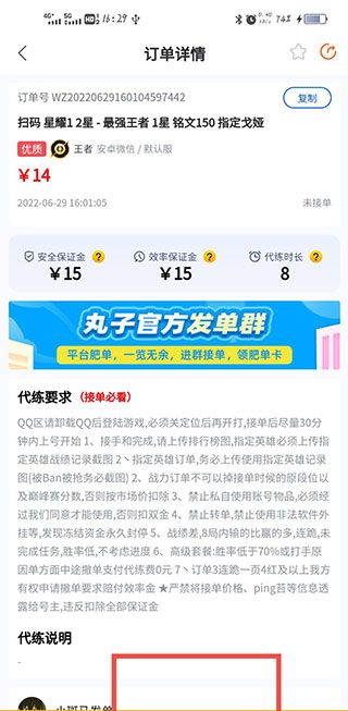 同时,如果是需要代练之后才能发现的信息不符(加分不符),代练一局立即提交异常,上传证据截图,联系上家协商处理。(如果信息不符仍然开始代练则官方视为下家默认接受此订单信息不符情况,所造成的损失由自身承担。若出现纠纷官方有权根据订单实际情况判决处理)