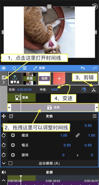3.视频剪切:任意调整素材的时间,快速剪切开头和结尾。