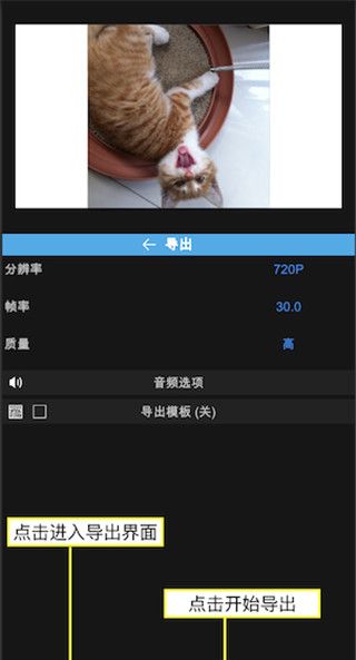 4、点击左下角的“导出”图标进入导出界面。点击“三角形”图标开始导出,等待完成即可。