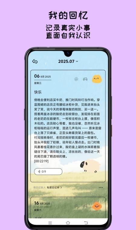 还可以清晰地回顾自己所记录的日记,方便用户真实地回忆各种小事,快速回忆。