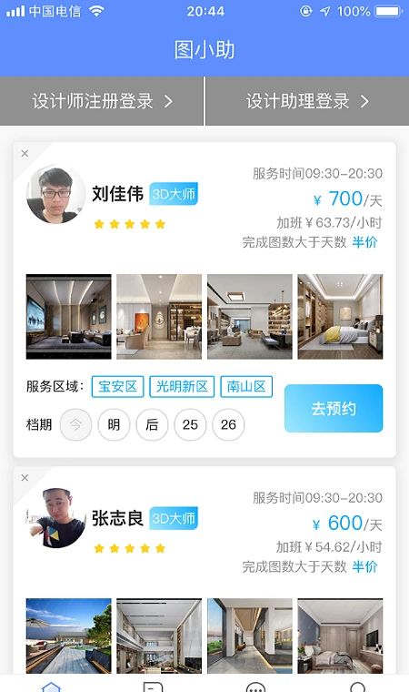 我们提供全国范围内的专业设计师资源。用户可以根据自己的需求,轻松预订自己的专用效果图设计师。