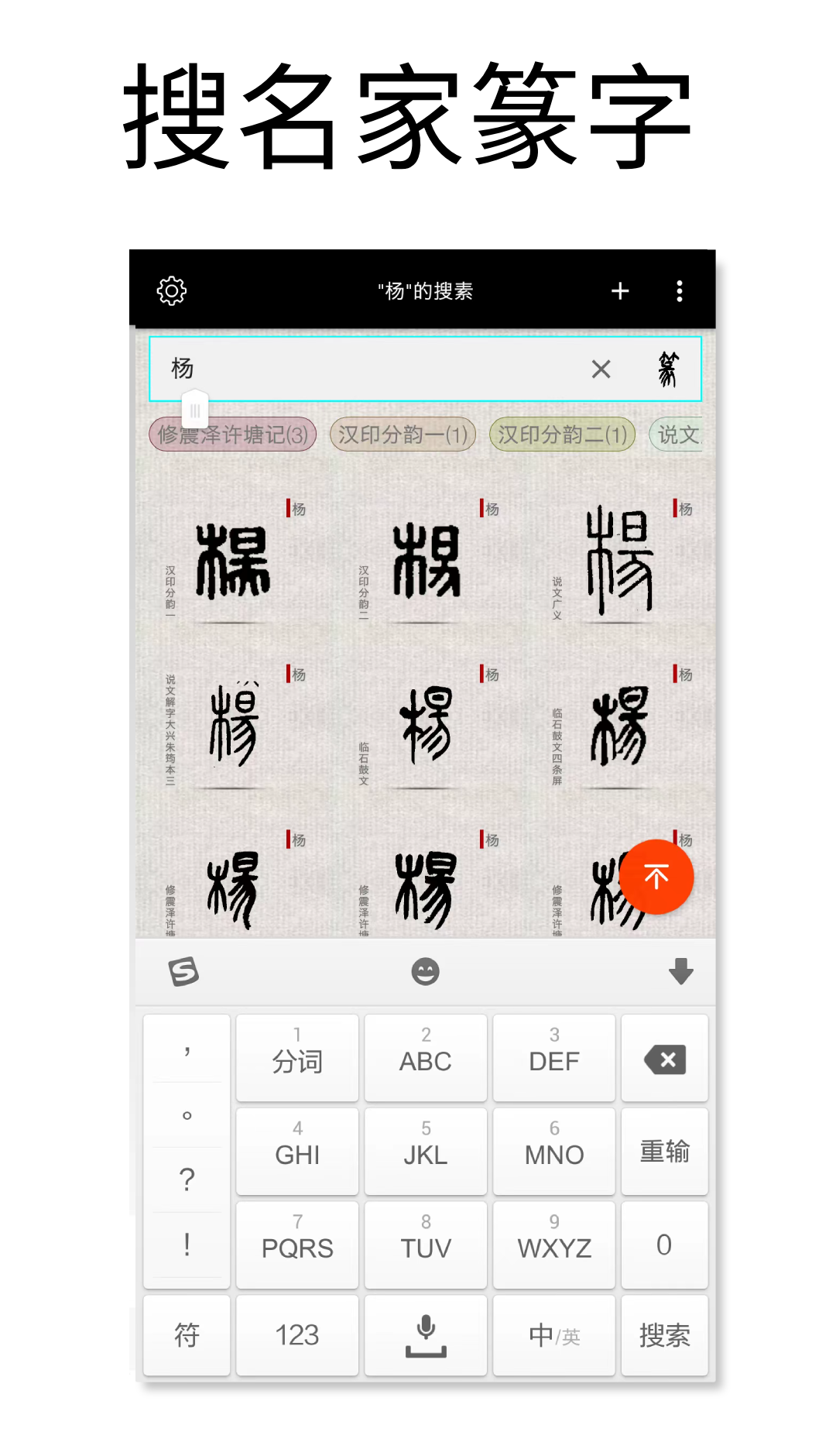 篆刻字典是一款专为篆刻爱好者及书法学习者量身打造的专业应用工具。这款软件精心汇集了海量的篆文字库,每一字都经过权威认证,确保了字形的准确性与历史的真实性,涵盖了从古至今众多名人书法家的经典字体,让使用者能够一窥书法艺术的千年传承。通过篆刻字典app,用户不仅可以快速且精准地查询到所需篆书的字形,还能深入了解每个字义背后的历史演变与文化内涵,仿佛穿越时空,与古人进行一场文字上的对话。