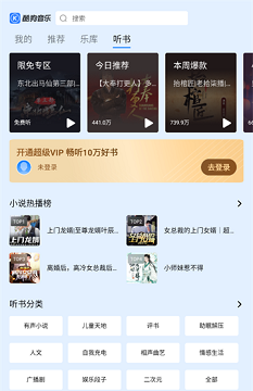 1、打开酷狗音乐hd,点击右上角听书板块。