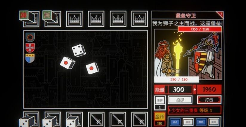 这是一款 roguelike 骰子构筑游戏,你将化身为妖精林地归来的女王——格温妮薇儿捕猎反抗陷害亚瑟王的敌人,利用你的智慧策略以及运气释放强力攻击,击败敌人,并拯救出被施加魔法的亚瑟王!拯救陷入危机的卡美洛王国!