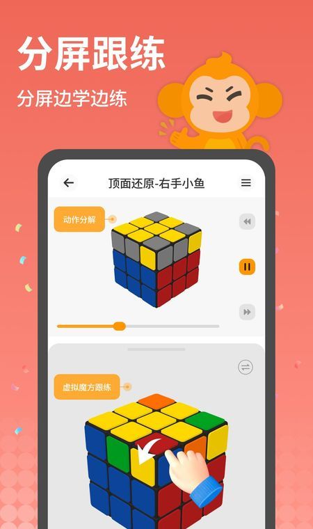 3.可爱的小猴子全程陪伴着我,让学习魔方变得有趣,打破了枯燥的公式记忆。