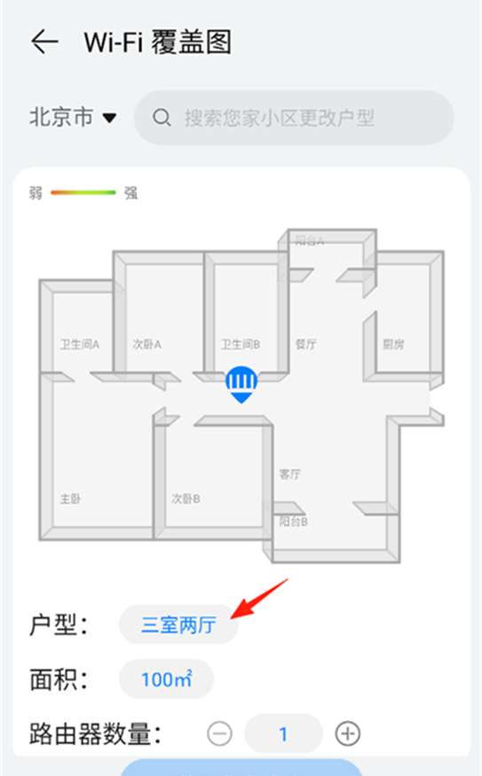 10、如下图,将Wi-Fi放入卫生间b,Wi-Fi覆盖整个房子的情况。