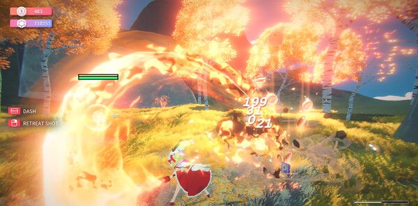 12场以东方角色为原型的BOSS战融合弹幕与动作要素,如「西行寺幽幽子」的樱花陷阱需预判走位,「八云紫」的隙间攻击要求快速反应。破盾后可触发QTE终结技,增加战斗爽快感。