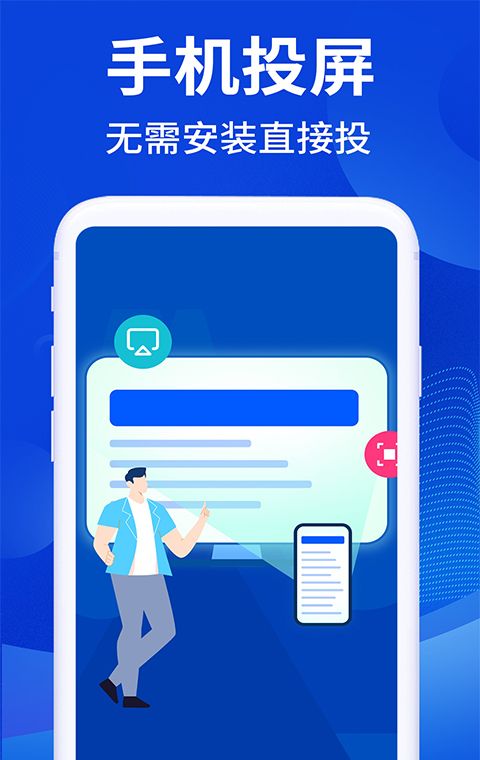 1、一键式屏幕投影:支持快速搜索和连接到同一Wi-Fi网络下的智能电视、投影仪和其他设备,分三步完成屏幕投影。