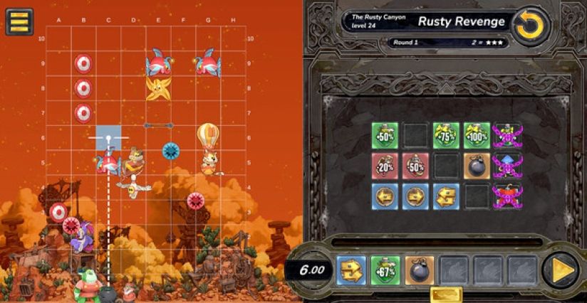 每一关都会提供一组动作方块,可以插入到动作序列中。序列长度因谜题而异,并从左到右执行。动作包括:左右移动、药水增强或削弱大炮威力、爆炸物库,以及“等待”和“循环”等辅助操作。