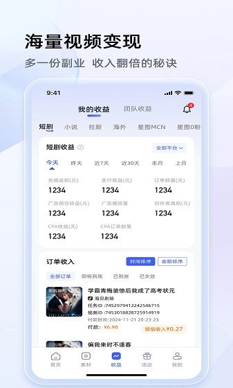 4、收益透明:实时统计内容播放量、转化率与佣金收入,每日收益清晰可查,提现便捷。