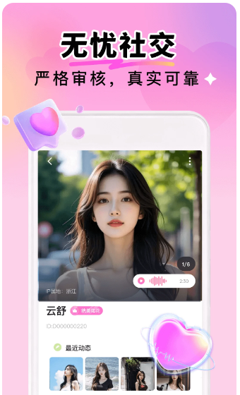 2、【无忧社交,真实可靠】让每一次认识都踏实又靠谱!全程人工审核+实人认证,无需顾虑对方身份真实性,专注于彼此的话题与心意。确保每个问候都真实温暖,让每一次相识都值得托付。