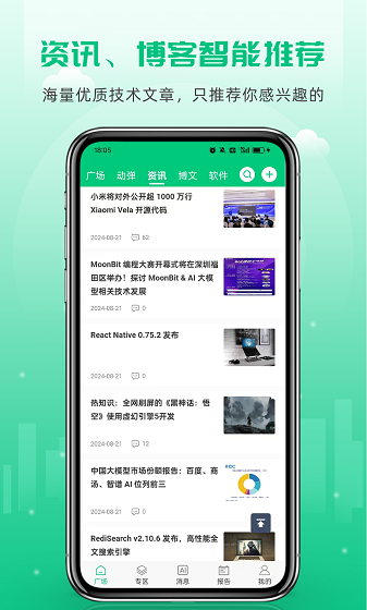 1、智能资讯:快速获取到开源界的重大资讯、动态和IT技术类干货,不错过任何一个行业趋势。