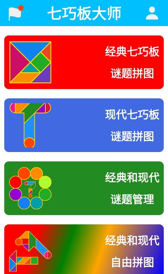 1、点击首页“经典七巧板”进入游戏模式,开始体验丰富多样的经典图形拼图挑战内容。