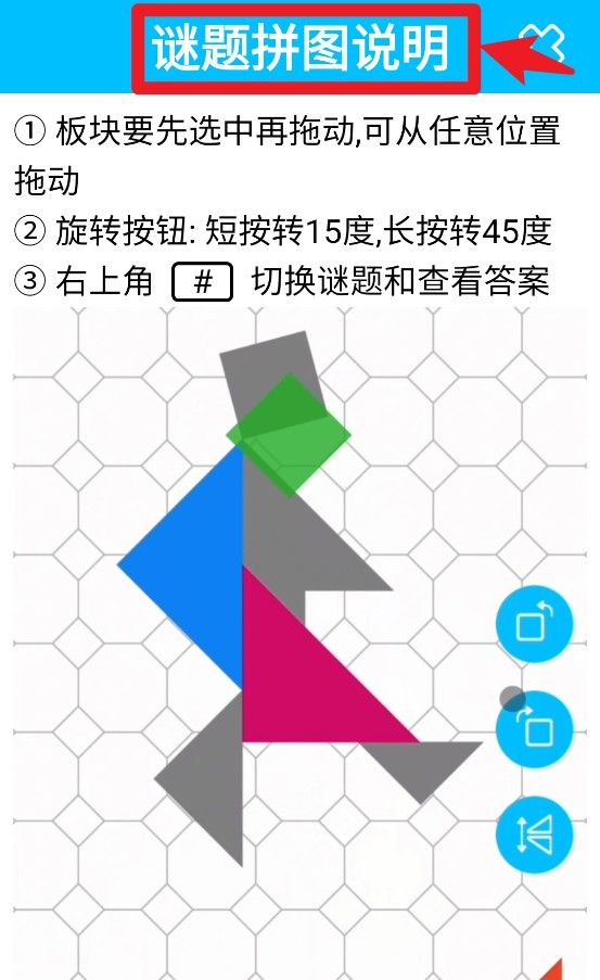3、拼图说明页详细介绍操作方式,包括拖动、旋转等方法,帮助玩家快速上手拼图过程。