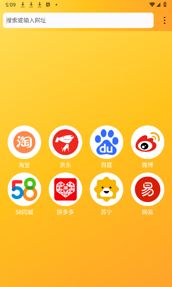 2、打开榛果浏览器app后即可看到有多种品类的搜索栏。