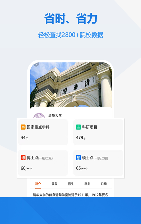 2、数据权威:与教育部和省级教育考试机构的官方招生计划和历史录取成绩同步,实时更新。