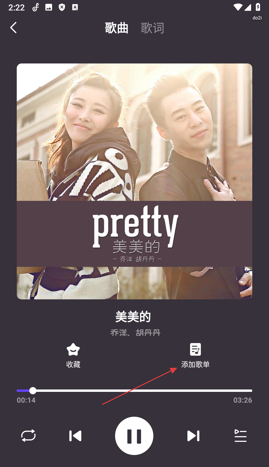 2、在歌曲播放页面,点击【添加歌单】,弹出温馨提示框。
