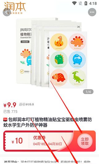 4、进入商品详情页面,可以看到有优惠券,分享赚和自购省等,这些功能都可以帮助用户进行一个省钱的操作。