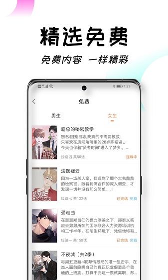4、免费阅读区:大量高质量的漫画免费提供。你可以在没有会员的情况下阅读完整的章节,从而降低了阅读漫画的门槛。