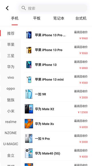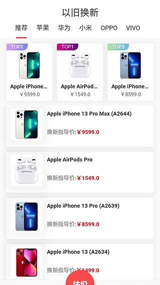 3、而在【估价】页面,我们还能看到各种机型的最高回收价,但实际价格可能会因为具体情况有所不同。