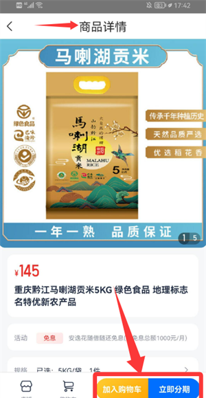 3、在详情页选择加入购物车或直接分期,即可完成购买。