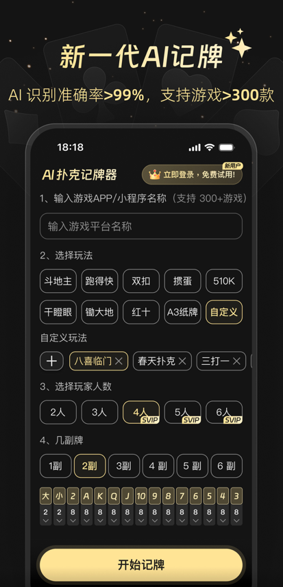 2、支持2-6人玩法,1-6副扑克,适配300+款游戏平台。