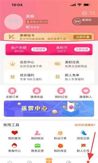 4、我的页展示账户余额与会员权益,含订单邀请收益等功能入口,是用户个人权益与工具的管理中心。