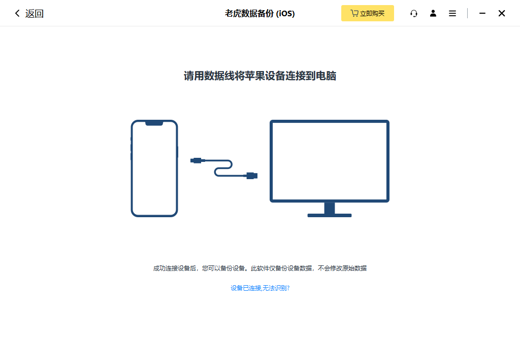 通过数据线将您的iOS设备连接至电脑,然后点击“备份你的iPhone”按钮。