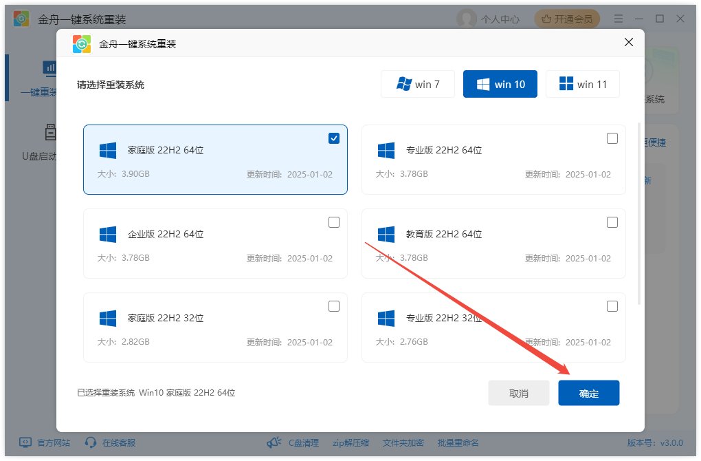 Step3、软件支持Windows7、Windows10和Windows11三种主流系统重装