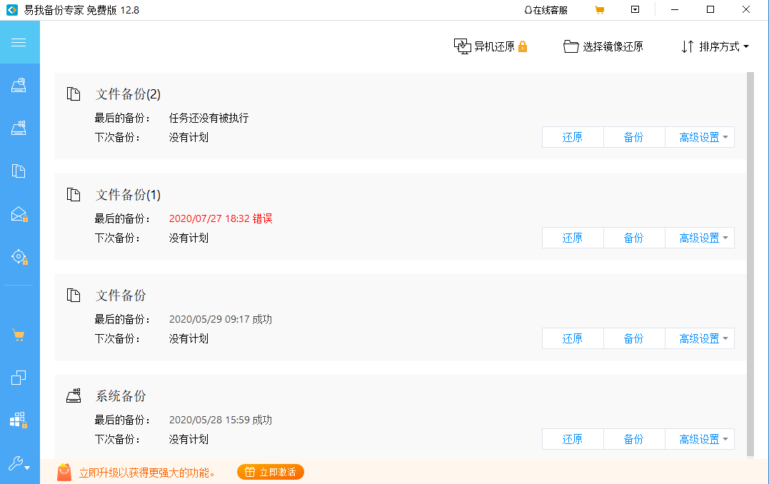 轻松方便的备份计划和任务管理,计划一目了然,操作一键搞定。