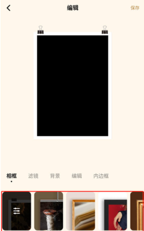 这里有着相框、滤镜、背景、编辑、内边框让你选择使用,编辑完成后即可保存了。