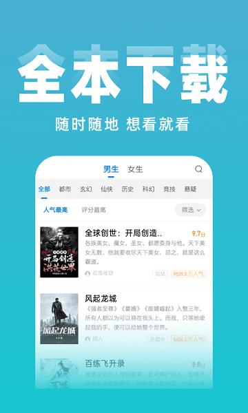5.支持在线阅读、下载阅读、序列化更新、字体切换、背景切换等功能。