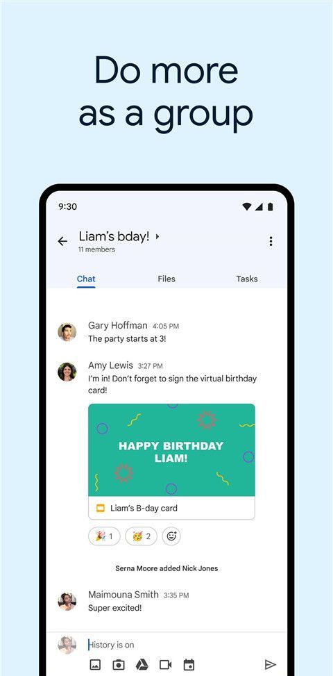 2、无需退出Gmail,即可通过Google Meet或Google Chat与同事联系、向日历发送邀请、向任务列表添加任务等。