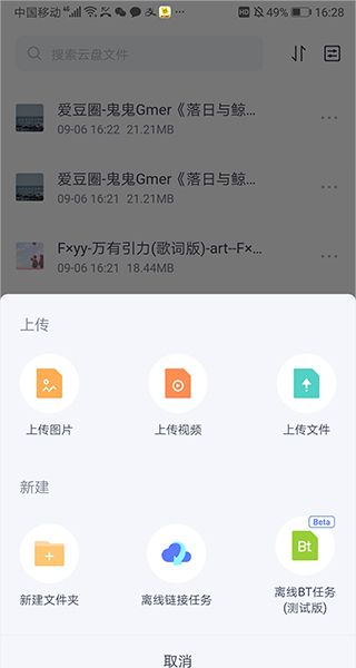 1、打开应用即可根据文件类型将文件上传到云盘中。