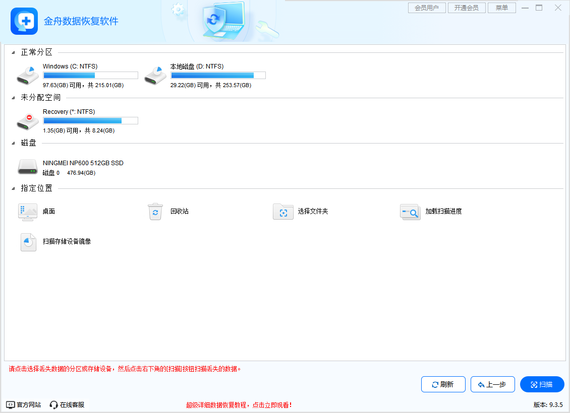 金舟数据恢复软件使用步骤