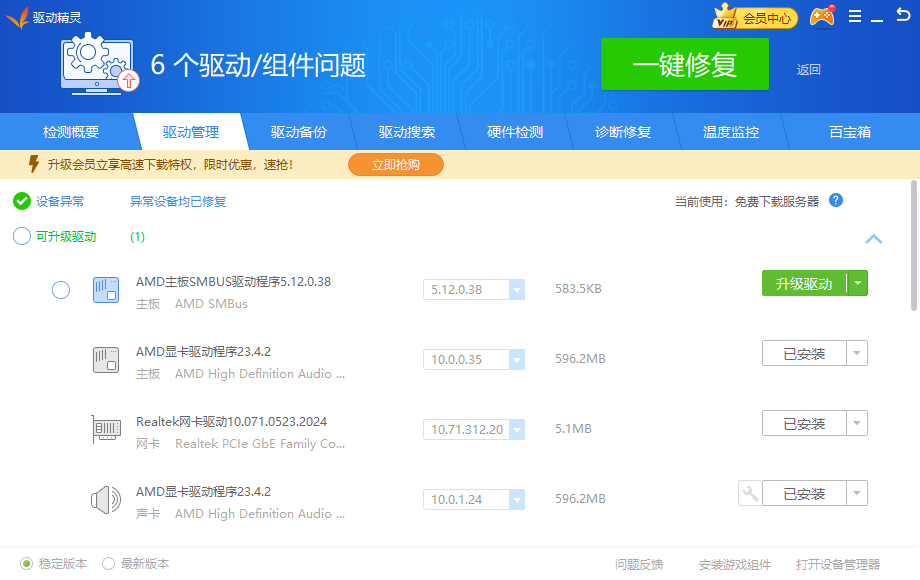驱动精灵标准版是一款免费的电脑驱动程序下载工具,收录了当下所有品牌、型号的硬件驱动程序,每日更新驱动库,为用户带来最新的硬件功能和兼容性。支持驱动备份、硬件检测、温度监控等多种功能,很是实用。如果你的电脑出行没有声音、屏幕帧率低、没有无线网